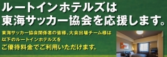 東海サッカー協会のスポンサーとして、東海サッカー協会関係者や、大会出場チームのために東海4県のルートインホテルズで優待料金での宿泊プランを提供してくださっています。
